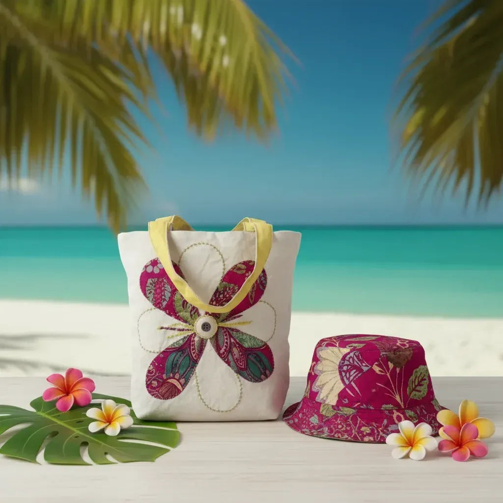 Tropical Floral Bag & Bucket Hat Set - Handmade Paradise Collection